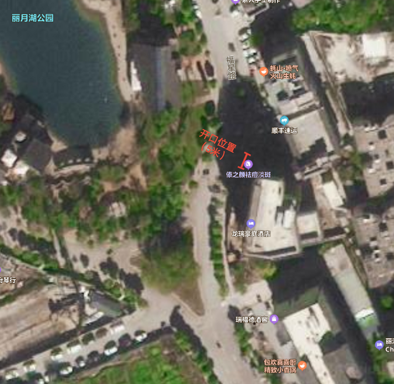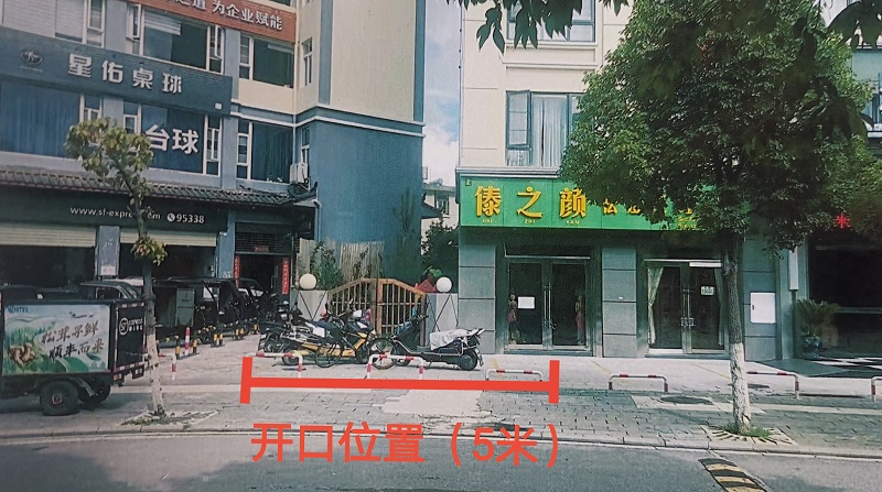 對麗月湖東區(qū)義正社區(qū)智納段55號門前麗江金穗房地產開發(fā)有限公司用地,在福星路東側開設5米寬出入口。 |