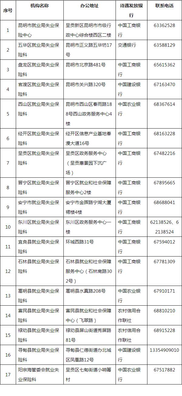 昆明失業(yè)保險(xiǎn)經(jīng)辦機(jī)構(gòu)待遇發(fā)放聯(lián)系方式