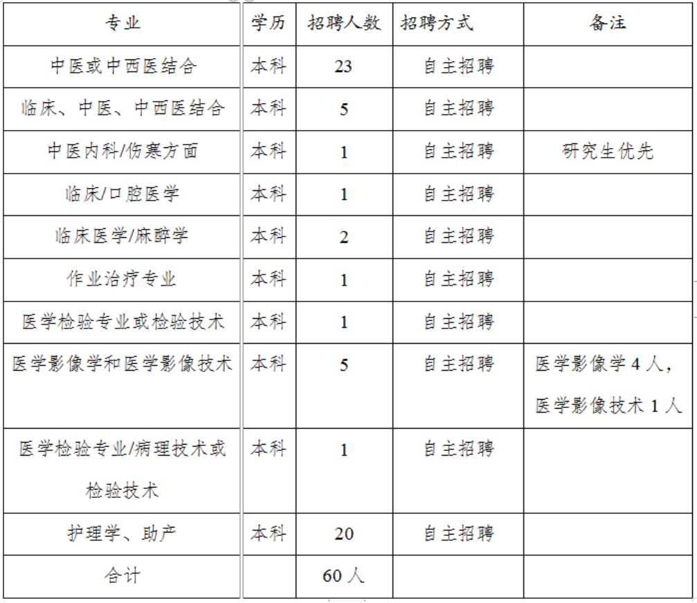 隨著醫(yī)院的發(fā)展,臨床科室的細(xì)化,醫(yī)院業(yè)務(wù)拓展需求,為進(jìn)一步加強(qiáng)醫(yī)院人才儲(chǔ)備工作,有效解決人才短板,優(yōu)化人才隊(duì)伍建設(shè),更好地服務(wù)患者,經(jīng)醫(yī)院領(lǐng)導(dǎo)研究,決定面向社會(huì)公開招聘編制外合同制緊缺人才60名。