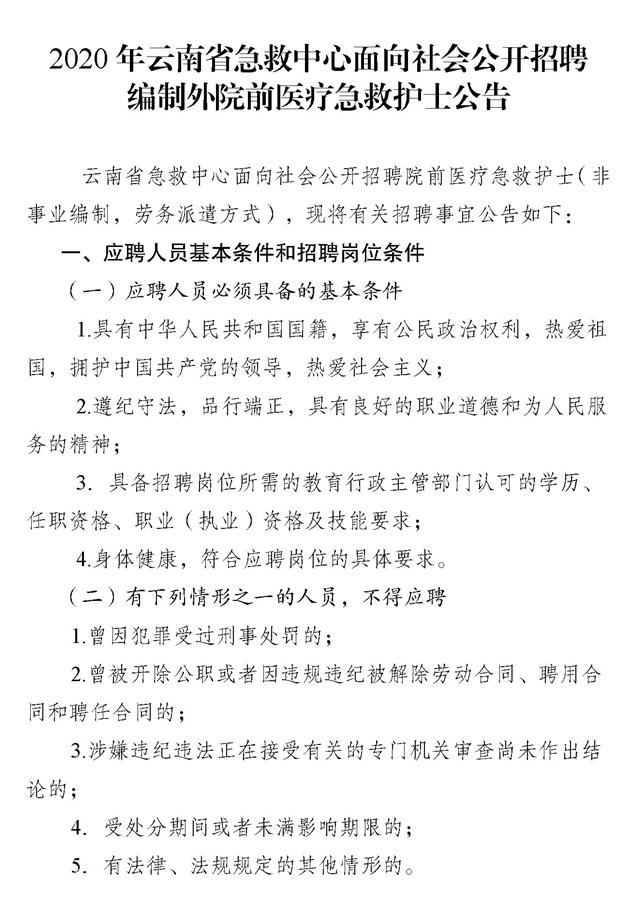 云南省急救中心面向社會(huì)公開(kāi)招聘